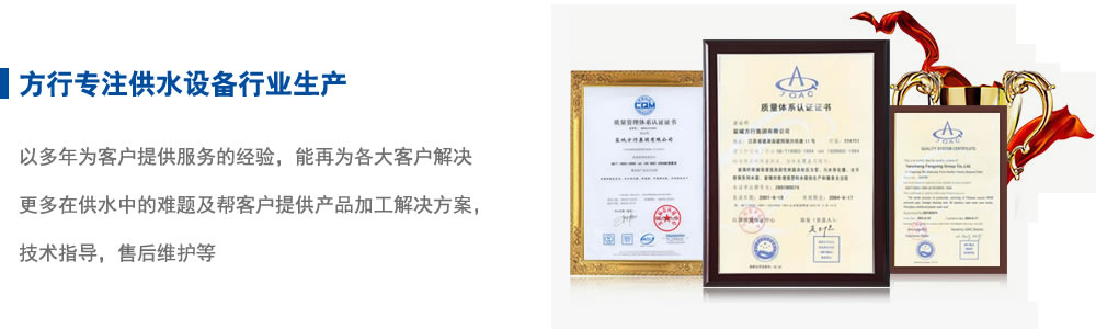 鹽城方行集團(tuán)有限公司秉承“務(wù)實、誠信、拼搏、創(chuàng)新”的企業(yè)精神,經(jīng)歷了近數(shù)十年的歷程取得了跨越式的發(fā)展。高起點才會有更高的品質(zhì),優(yōu)雅的環(huán)境,先進(jìn)的設(shè) 備,高效的團(tuán)隊,造就了一批批優(yōu)質(zhì)的產(chǎn)品。堅持質(zhì)量、用戶至上的宗旨,公司全面通過了ISO國際質(zhì)量體系認(rèn)證,是制造供水成套設(shè)備廠家 之一。經(jīng)悉心打造,已享有較高的知名度,產(chǎn)品遍布全國,不斷研發(fā)全新產(chǎn)品,滿足消費者的需求 | |